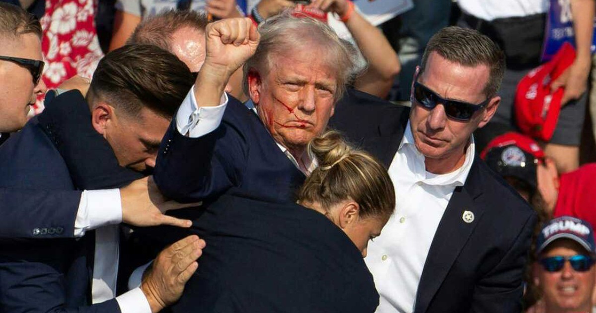 Ông Trump trong vòng vây mật vụ sau khi đạn sượt qua tai trên khán đài tại buổi mít tinh tranh cử tổng thống ở Butler (bang Pennsylvania) hôm 13.7.2024