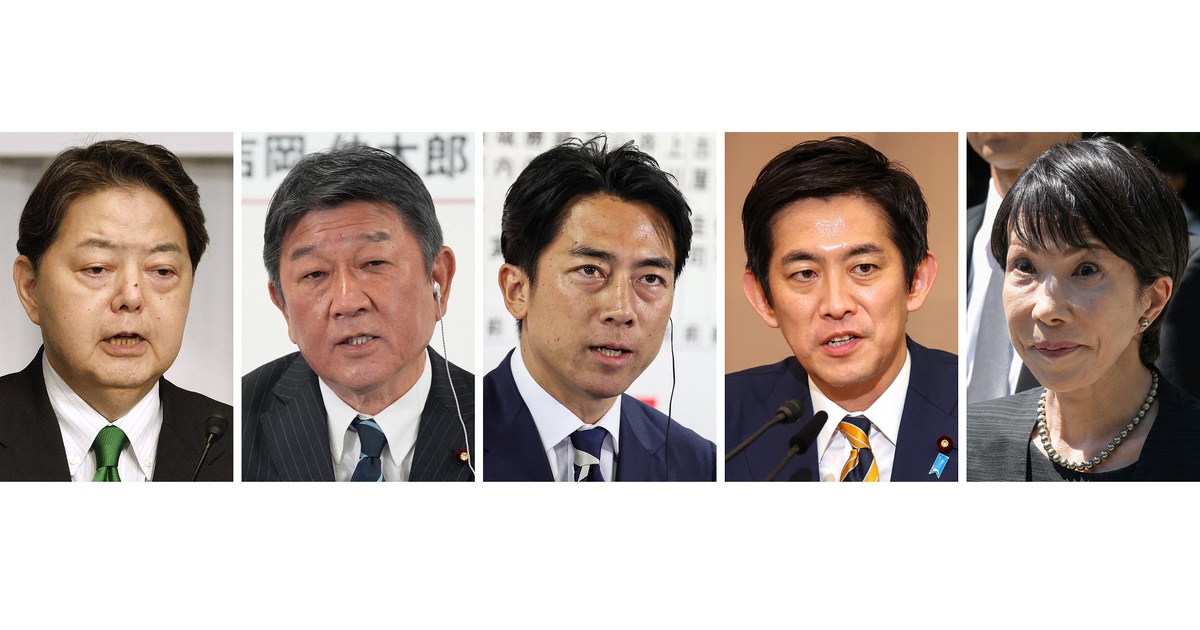 (Từ trái qua) Các thành viên LDP đã hoặc sẽ có thể ra tranh chức chủ tịch đảng: Hayashi, Motegi, Koizumi, Kobayashi và Takaichi