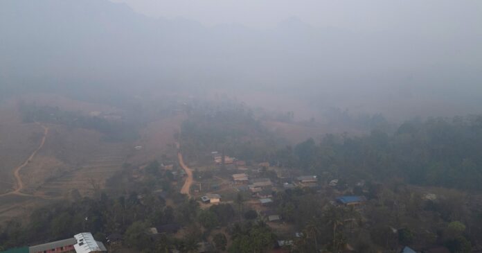 Bức ảnh được chụp vào ngày 22.3 cho thấy mức độ ô nhiễm không khí cao do cháy rừng và đốt rơm rạ ở huyện Umphang thuộc tỉnh Tak ở phía bắc Thái Lan