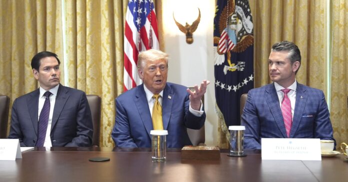 Tổng thống Trump (giữa) phát biểu trong cuộc họp nội các ngày 8.7