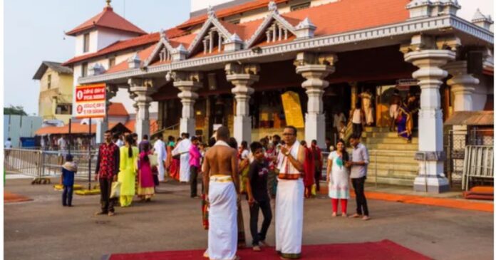 Mỗi ngày có hàng trăm người hành hương thăm viếng đền đền Dharmasthala ở bang Karnataka thuộc tây nam Ấn Độ
