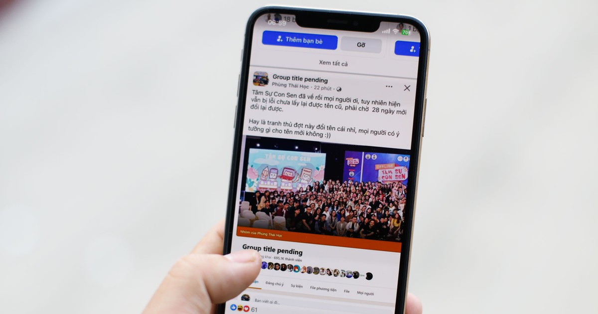 Một nhóm gần 700.000 thành viên đã hoạt động trở lại sau khi bị khóa hôm 24.6 nhưng tên nhóm vẫn là “Group title pending”