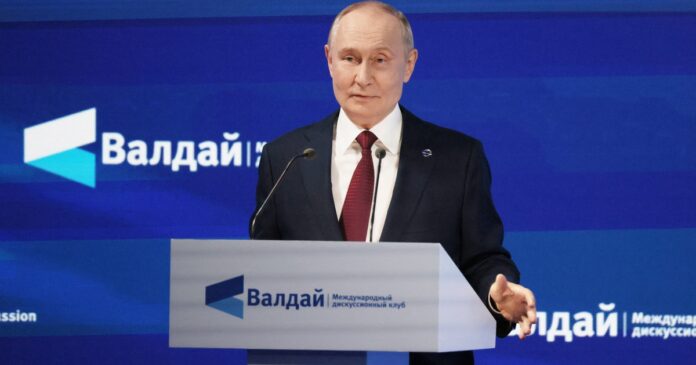 Tổng thống Nga Vladimir Putin phát biểu tại hội nghị quốc tế thường niên của Câu lạc bộ thảo luận Valdai ở thành phố Sochi (Nga) ngày 2.10