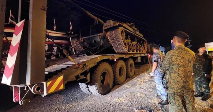 Đội quan sát viên ASEAN giám sát việc đưa 2 xe tăng M60A3 trở lại căn cứ ở tỉnh Saraburi, Thái Lan vào ngày 28.10.2025