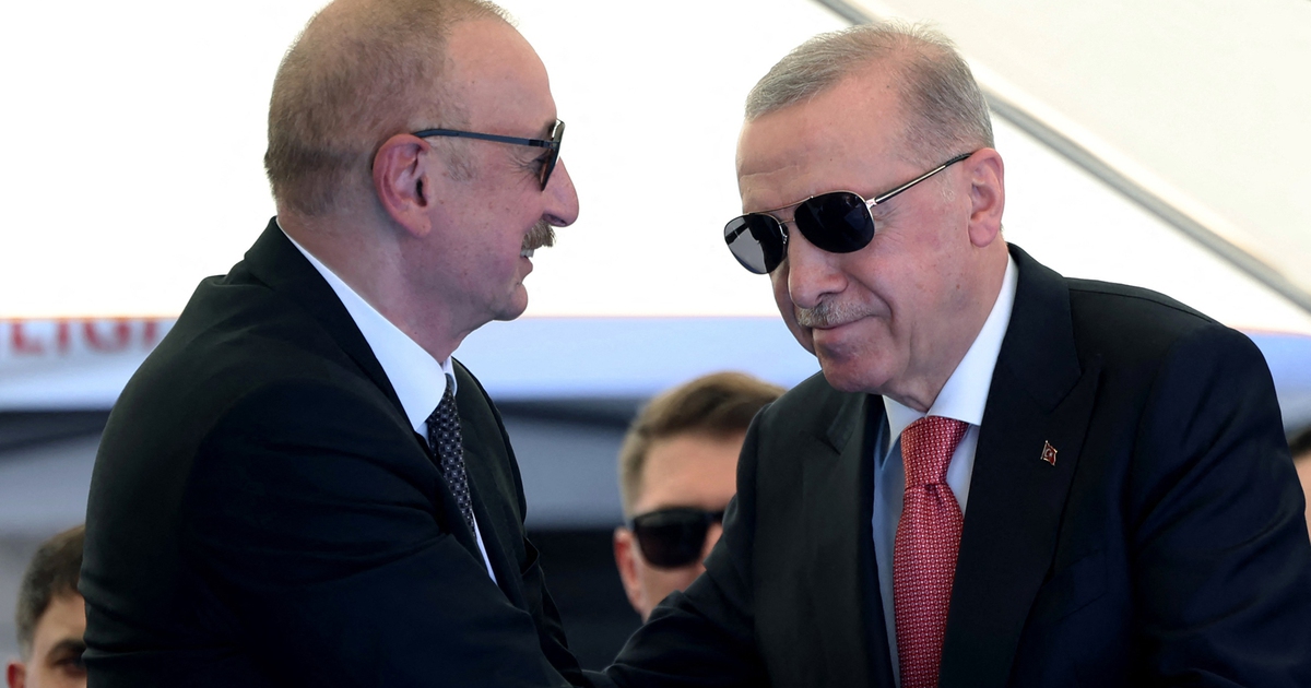 Tổng thống Thổ Nhĩ Kỳ Recep Tayyip Erdogan (phải) bắt tay Tổng thống Azerbaijan Ilham Aliyev